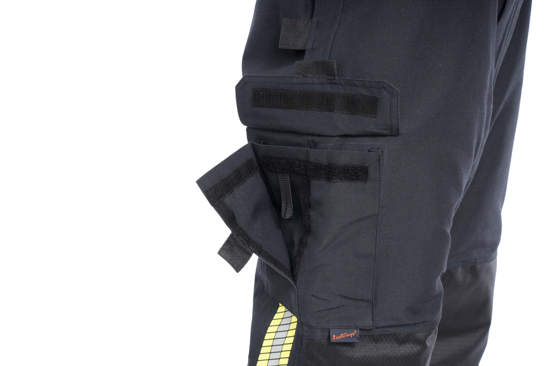- Hosenbeine mit Weitenkeil und Klettriegel sowie innenliegender Saugsperre