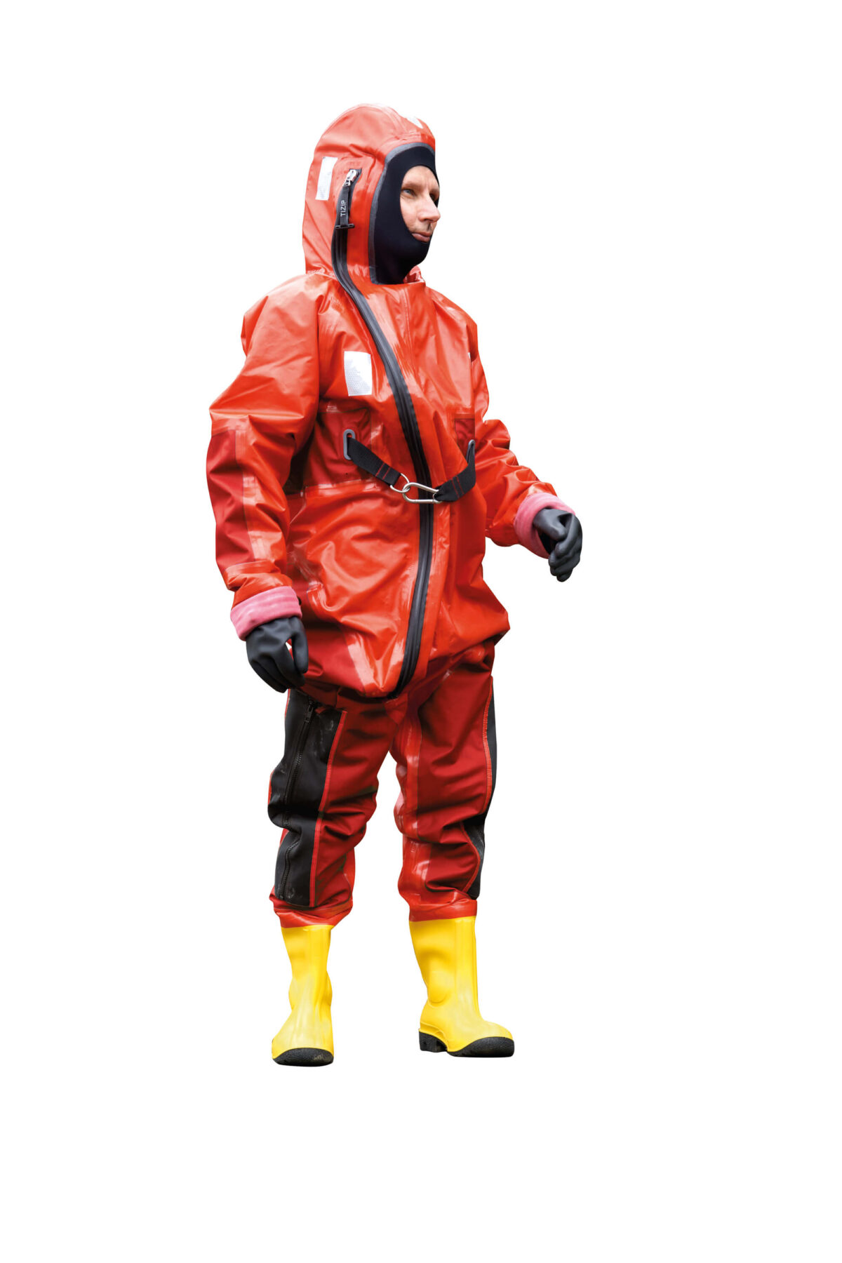 - einteiliger Anzug mit angearbeiteter Kopfhaube